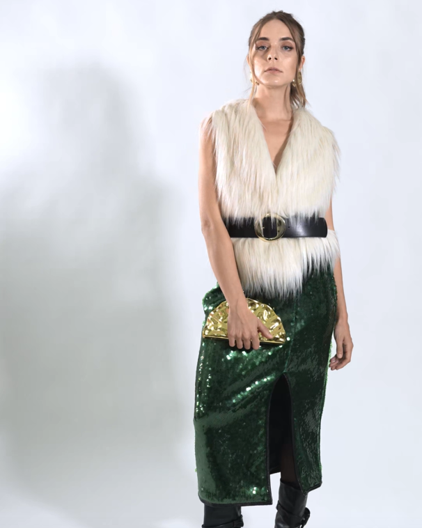 Pailletten Shirt gepatcht mit veganen Lederfalten