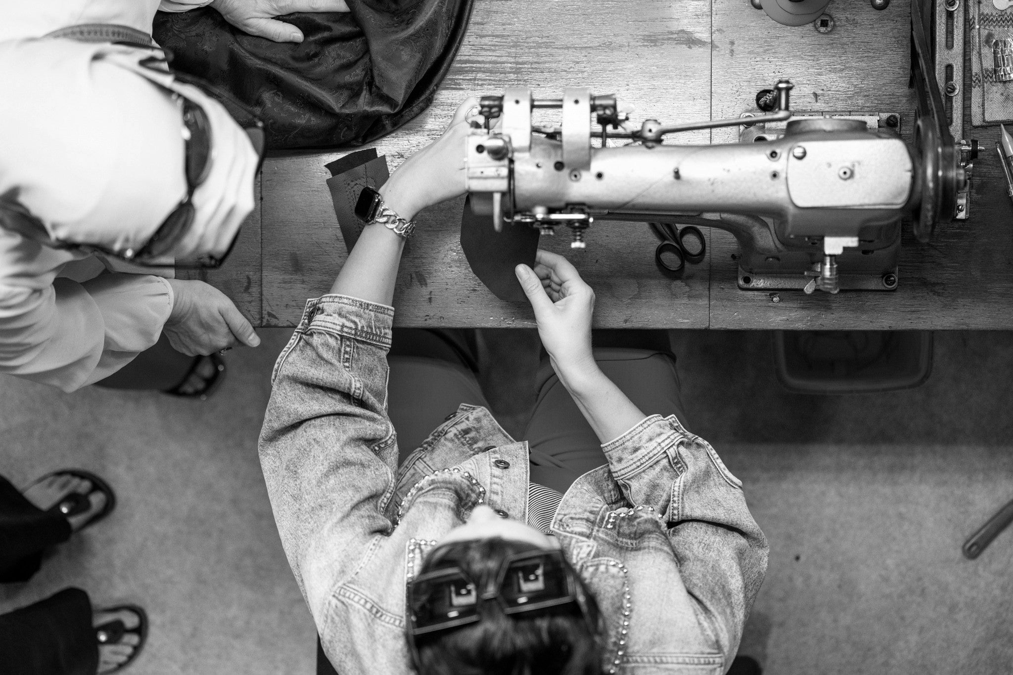 Genäht wird in unserer deutschen Produktionsstätte im Atelier oder in Zusammenarbeit mit unserem polnischen Hersteller.